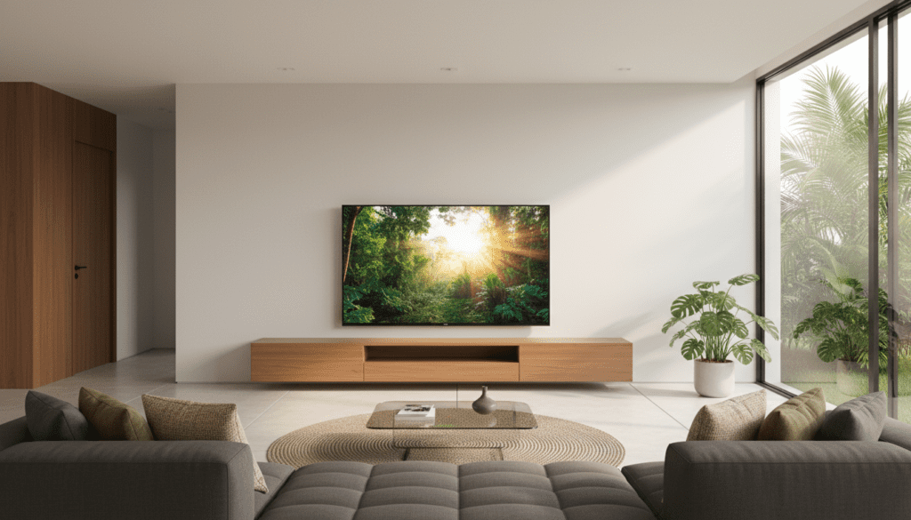 Dica de Especialista para Instalação: Ao ligar sua TV pela primeira vez, não utilize o modo de imagem “Padrão” ou “Dinâmico”. Vá nas configurações e altere para “Modo Cinema” ou “Filmmaker Mode”. Isso desativará o excesso de nitidez artificial e cores saturadas, entregando a imagem mais próxima da realidade e calibrada por profissionais.