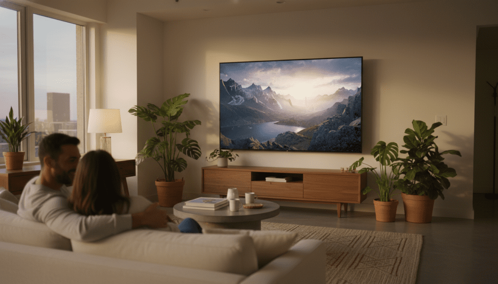 No entanto, painéis VA costumam ter um ângulo de visão mais restrito. Se você tem uma sala muito larga onde as pessoas sentam nas laterais extremas, as cores podem parecer um pouco lavadas. Além disso, se a sua sala tiver muitas janelas e luz solar direta, certifique-se de posicionar a TV de forma a evitar reflexos intensos, ou invista em cortinas blackout para maximizar o brilho e a cor do aparelho.