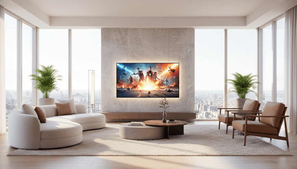 • Distância de 2,0m a 2,5m: TVs de 65″ (O novo padrão para salas de estar brasileiras).