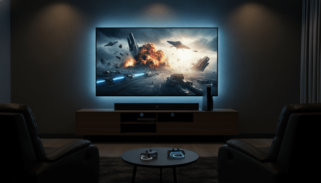 Em modelos premium, os alto-falantes são direcionados para cima (up-firing), fazendo o som rebater no teto e criar a ilusão de que há caixas de som acima da sua cabeça. Para maximizar essa experiência, recomendamos a leitura de guias especializados em TechRadar sobre como posicionar sua TV e soundbar perfeitamente na sala.