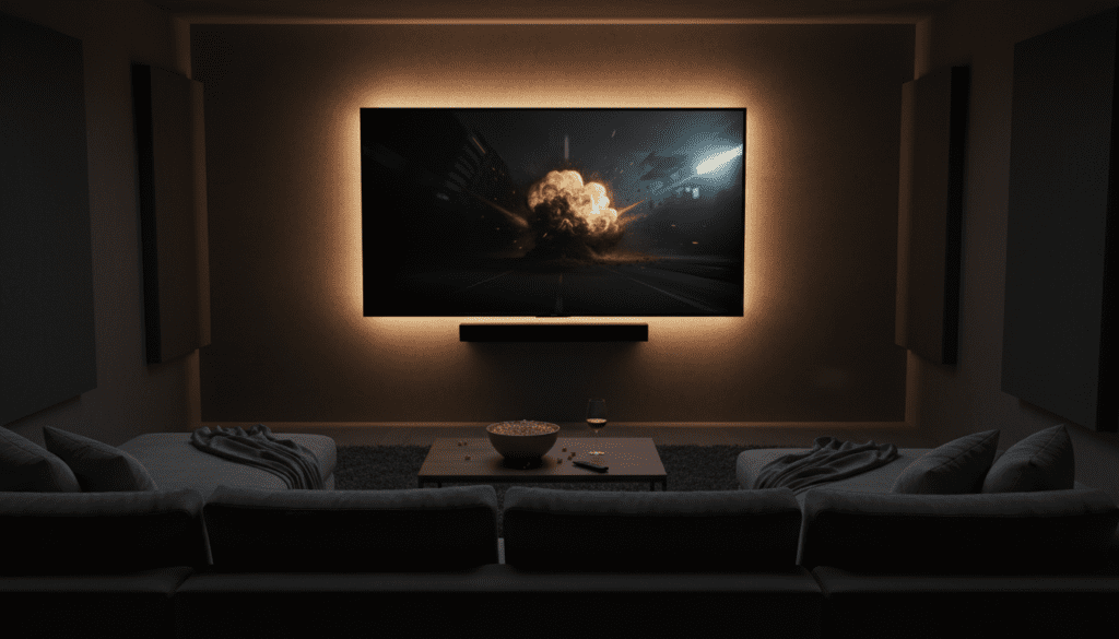 Para resoluções 4K, a distância ideal recomendada por especialistas em home theater é entre 2,3 metros e 3 metros. Isso garante que você não veja os pixels individuais, mas mantenha um campo de visão altamente imersivo, semelhante à experiência do cinema.